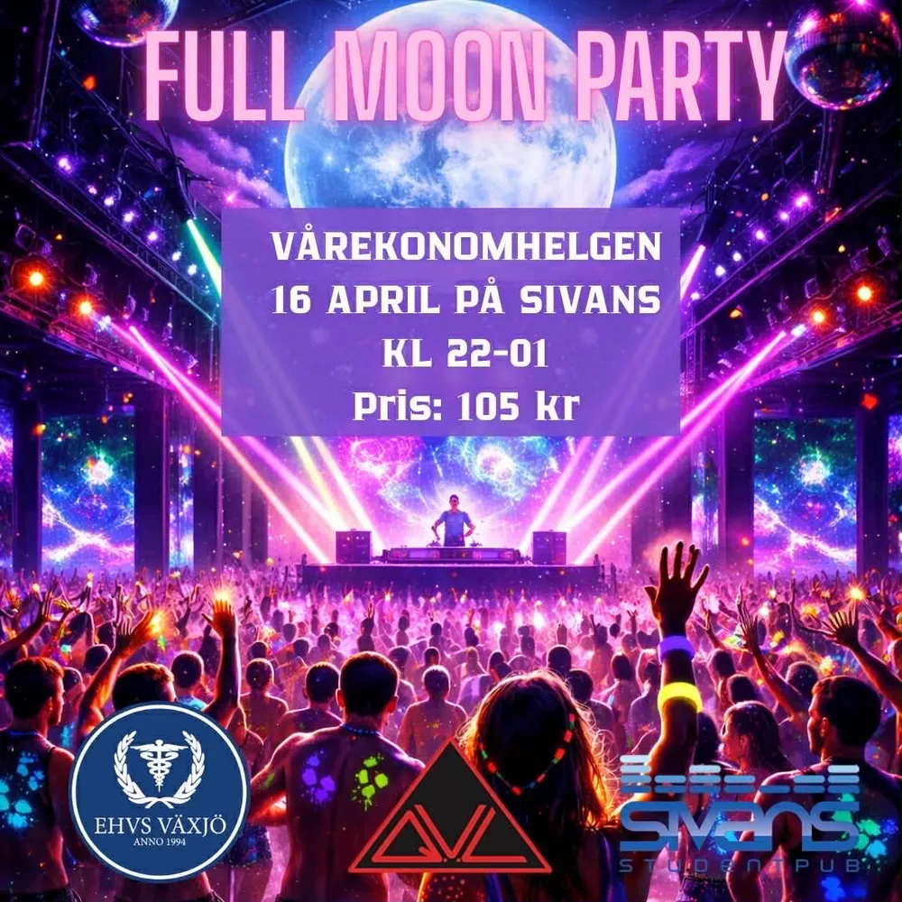 Drömmer du om tropisk värme, neonfärger och en fest utöver det vanliga? Då är det dags att packa med dig strandkläderna, ta på dig solglasögonen och förbereda dig för en magisk natt på Sivans! Q.U.L bjuder in till det mest maxade eventet under ekonomhelgen - FULL MOON PARTY! Inspirerat av Koh Phangans legendariska strandfester tar vi neon, beats och eufori till Växjö. Dansa under UV-ljus, måla dig i självlysande färger och låt dig svepas med i en natt fylld av tropiska vibbar och oslagbar energi.